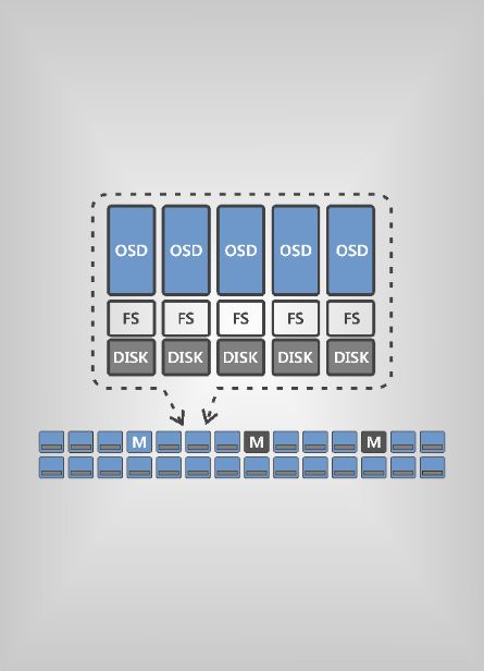 SDS - это программно определяемая распределенная файловая система, лишенная узких мест и единых точек отказа, которая представляет из себя легко масштабируемый до петабайтных размеров кластер узлов, выполняющих различные функции, обеспечивая хранение и репликацию данных, а также распределение нагрузки, что гарантирует высокую доступность и надежность.